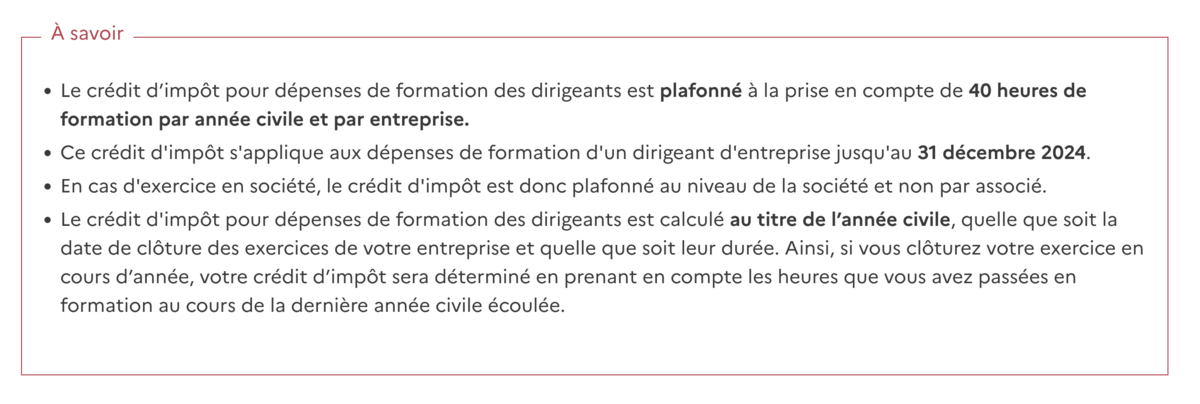 Source : https://www.economie.gouv.fr/entreprises/credit-impot-formation-dirigeants-chef-entreprise